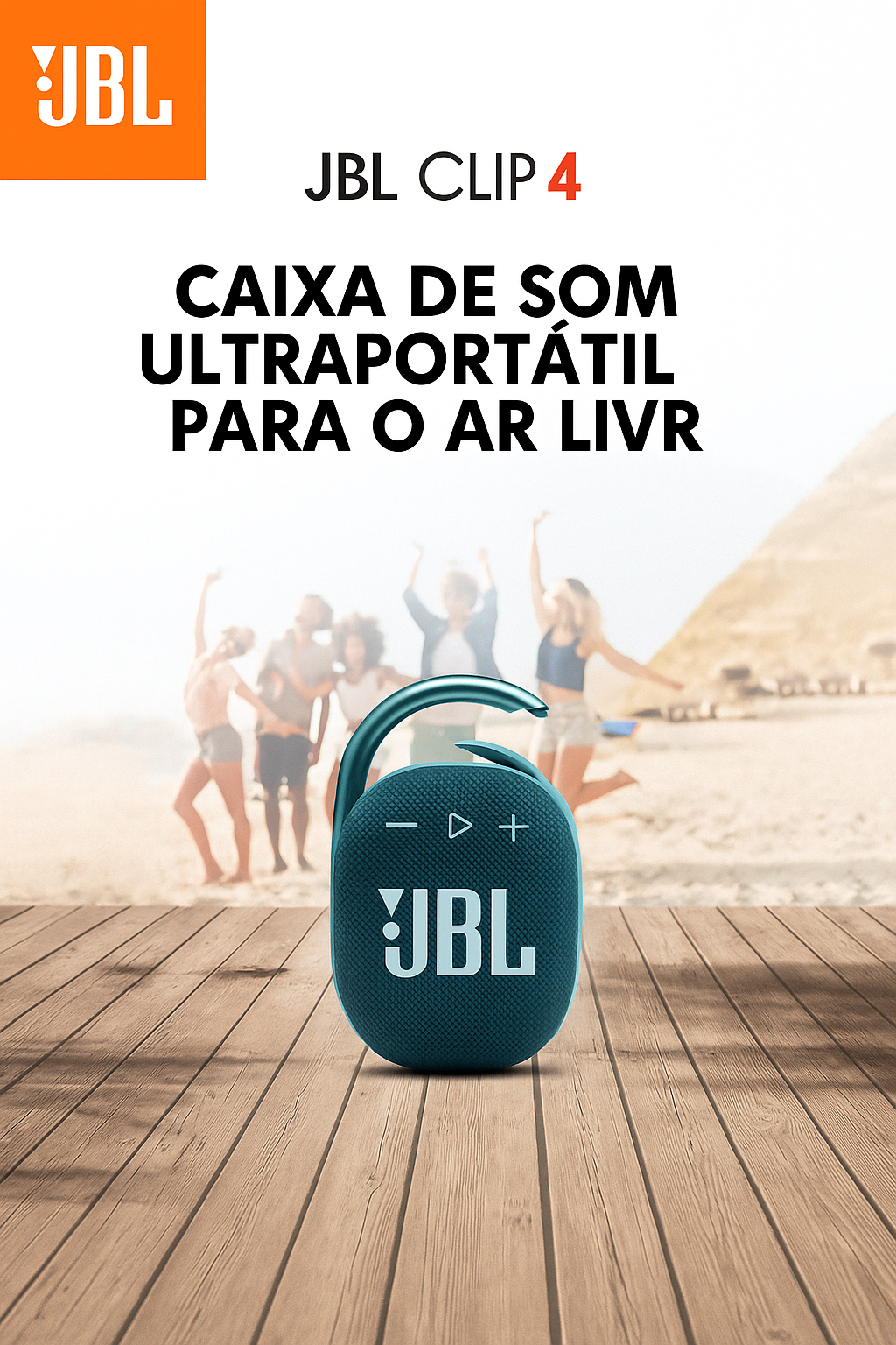 Disponível em diversas cores vibrantes, o JBL Clip 4 se adapta ao seu visual e acompanha seu ritmo. Ele é o acessório perfeito para quem ama música e liberdade, tudo com o toque inconfundível da JBL.