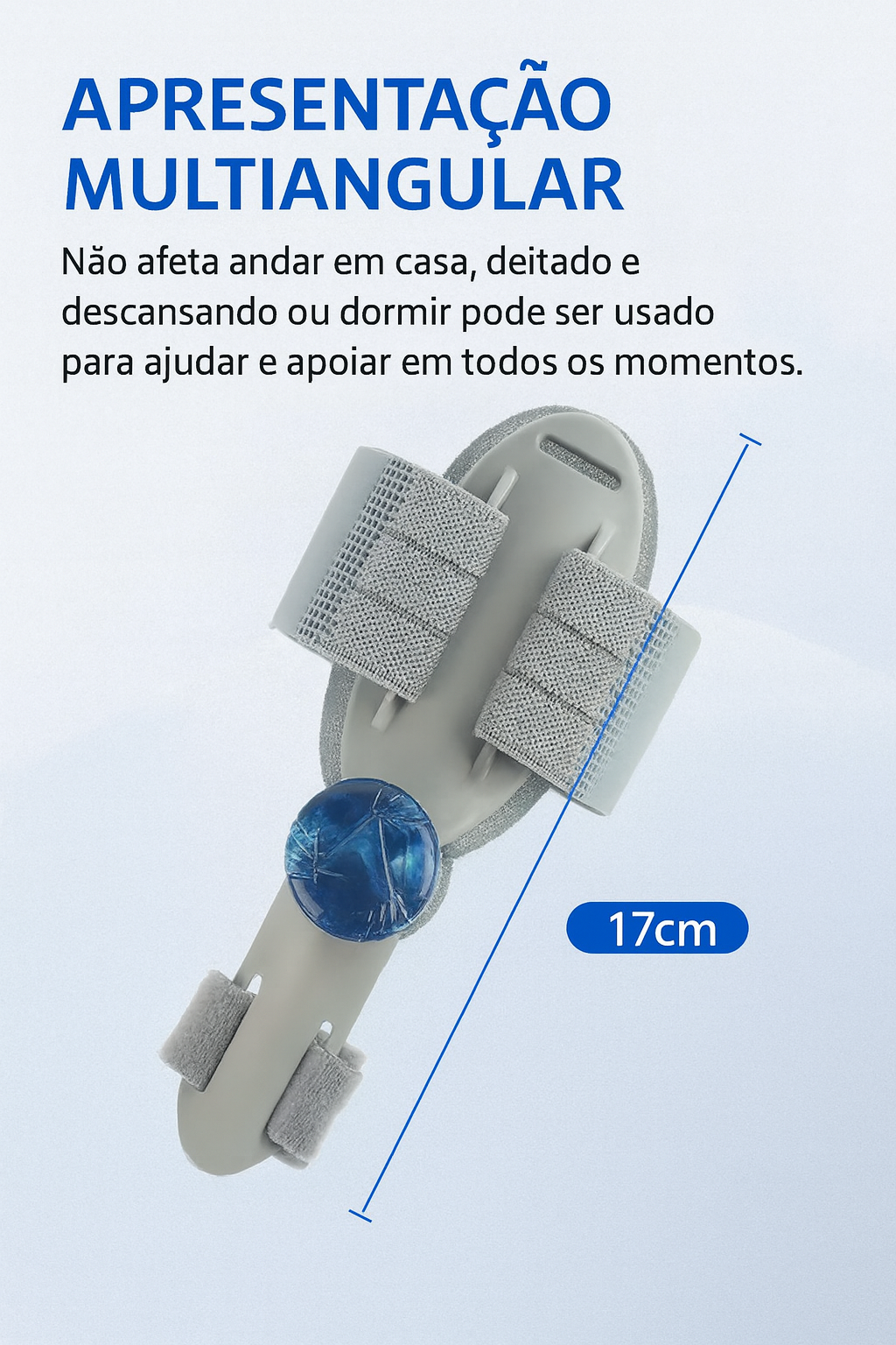 As tiras ajustáveis no calcanhar, peito do pé e dedão garantem que o corretor permanece no lugar o tempo todo, mesmo enquanto você caminha pela casa. Nada de ficar reposicionando ou apertando: é só colocar e deixar o aparelho trabalhar por você.