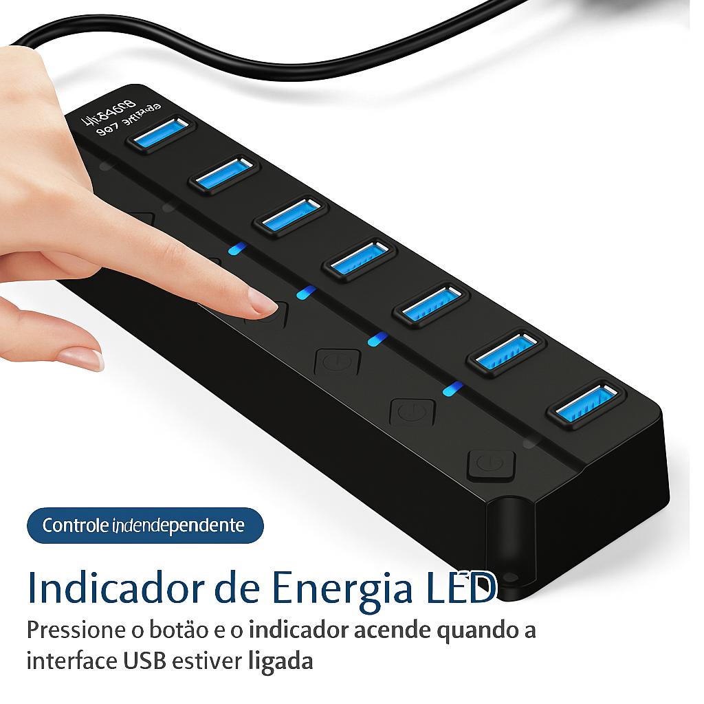 Diferente dos hubs comuns, cada entrada possui seu próprio interruptor. Ligou, usou. Desligou, economizou energia e protegeu seus dispositivos. Você controla tudo com um clique, simples, prático e inteligente.