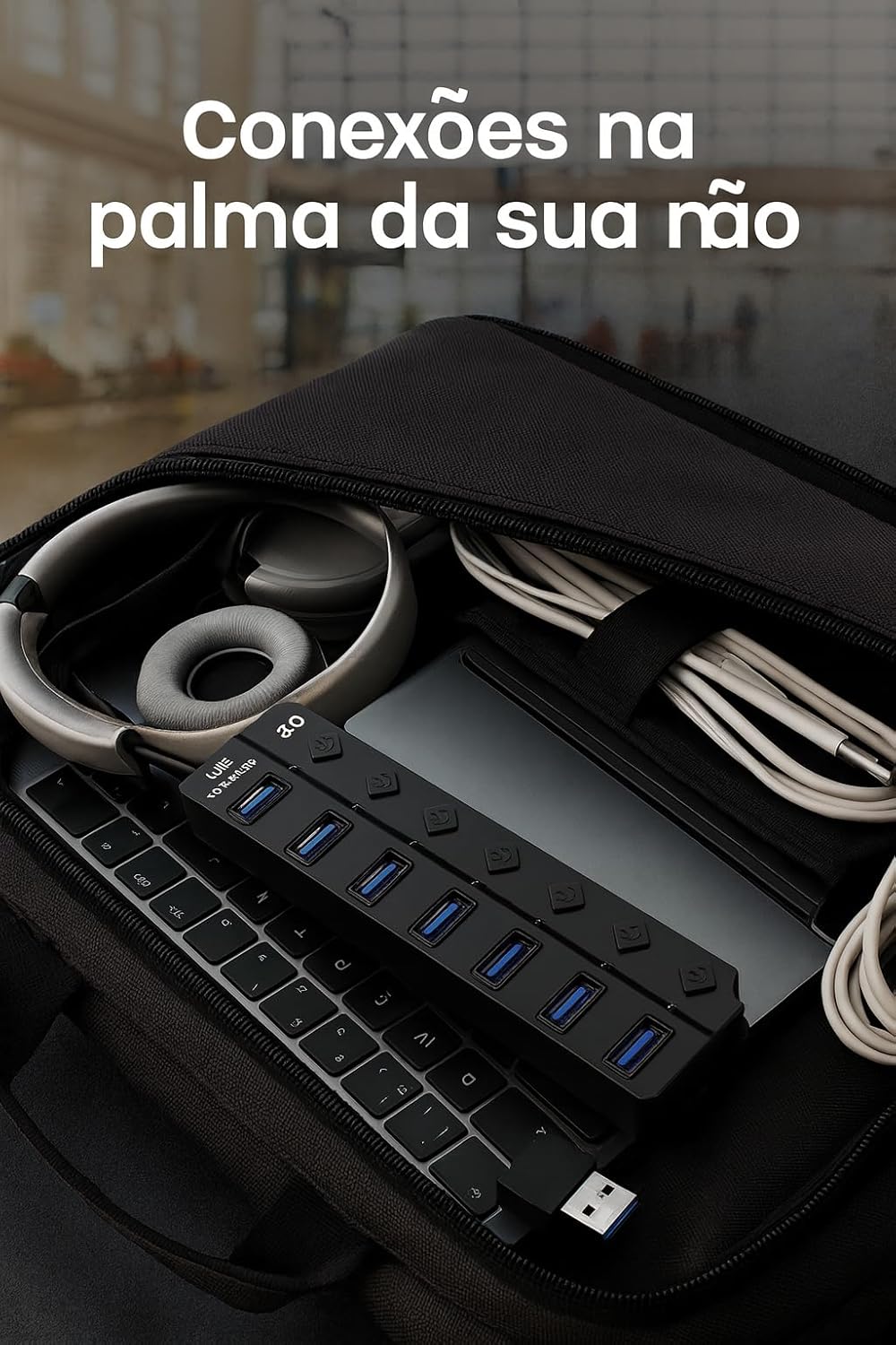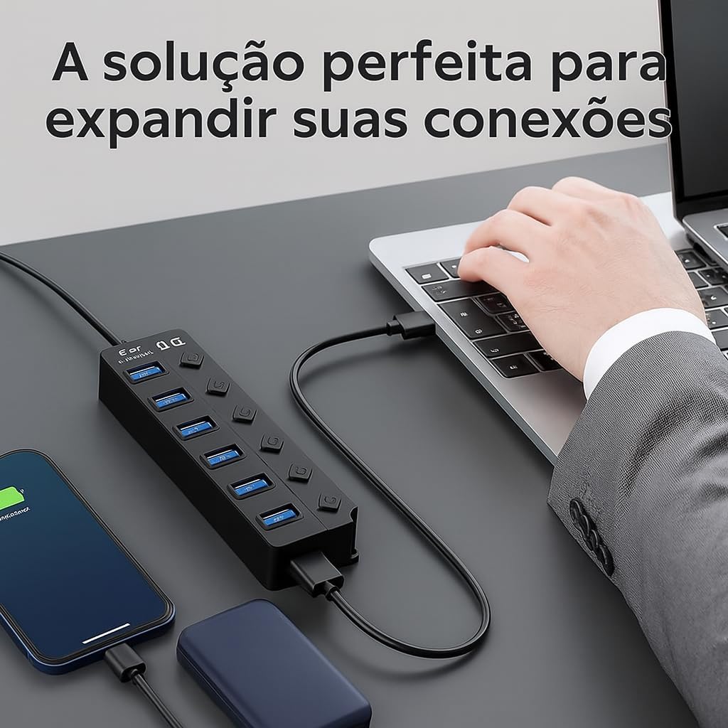Leve, elegante e discreto, ele ocupa pouquíssimo espaço na mesa e mantém todos os seus dispositivos conectados com eficiência. Ideal para home office, trabalho, estudos ou gamers que precisam de múltiplos acessórios conectados ao mesmo tempo.