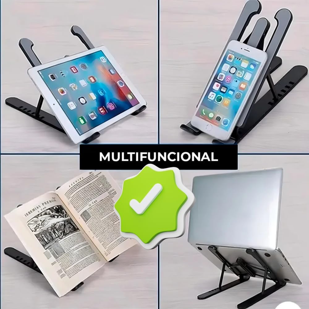 Seu formato dobrável e compacto permite levá-lo para qualquer lugar, do escritório à biblioteca, da sala ao café. Um suporte que acompanha seu ritmo e mantém sua mesa sempre organizada e elegante.